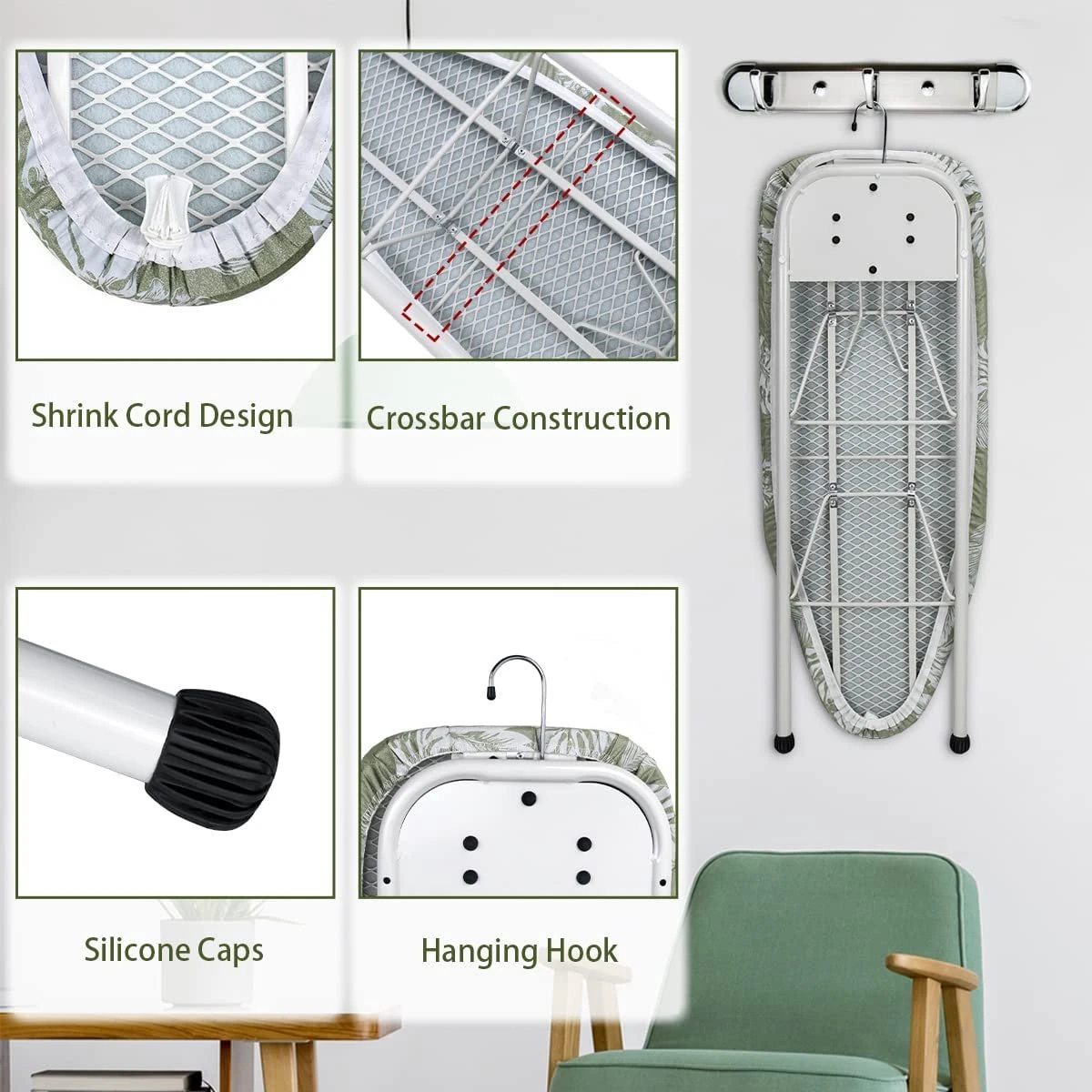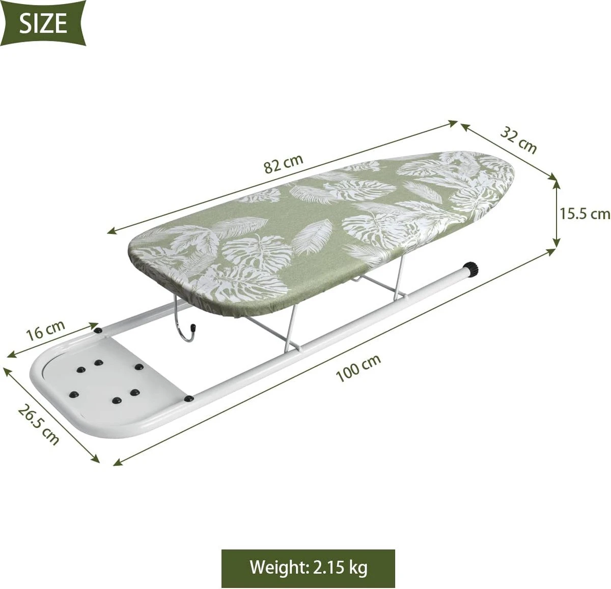 Petite Planche à Repasser Avec Repose-Fer, Table à Repasser De Table Avec Housse Résistante à La Chaleur, Design Compact Et Léger, Blanc, 32x82cm