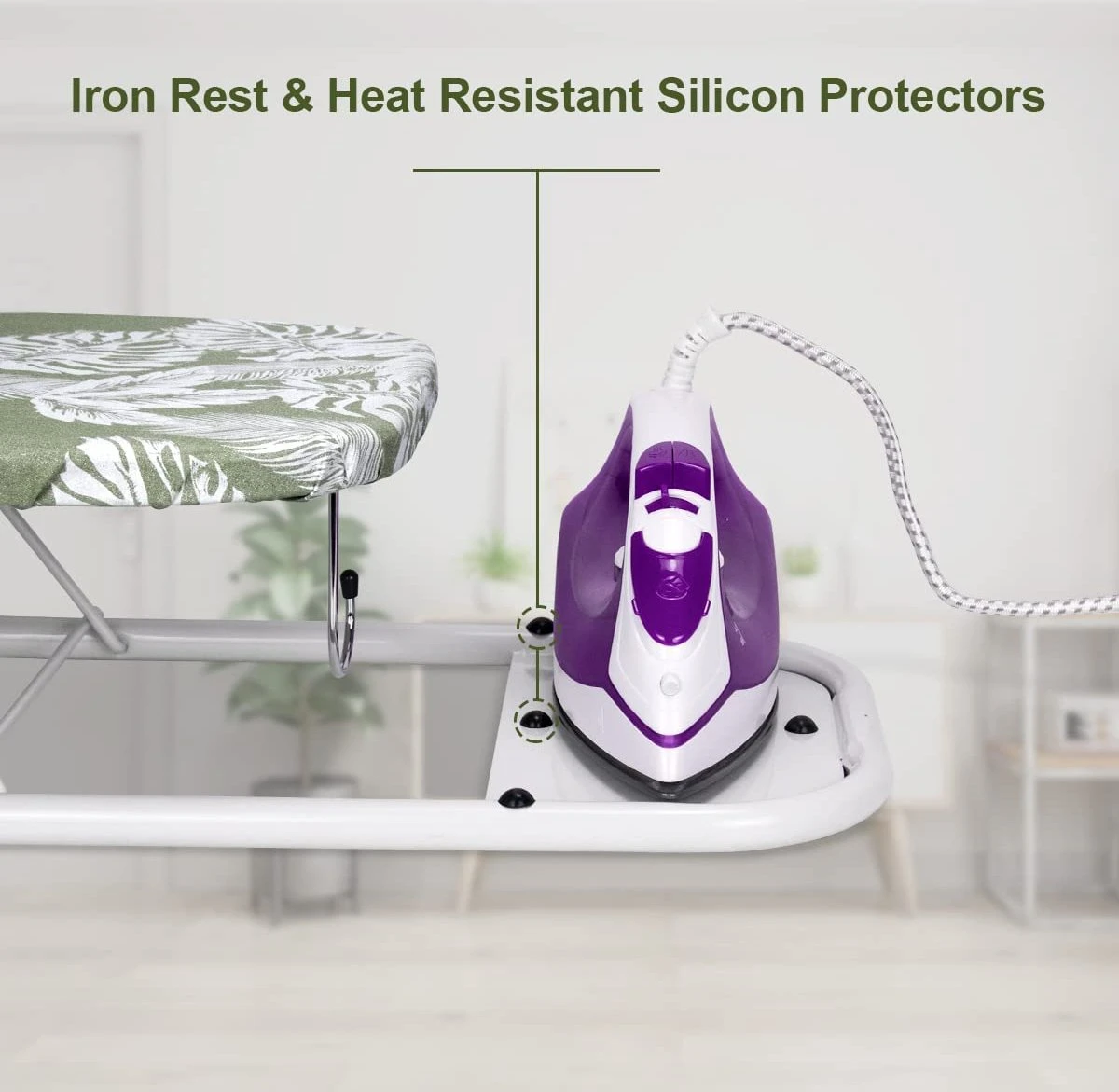 - Avec un repose-fer en métal, la mini planche à repasser est pratique et précieuse.