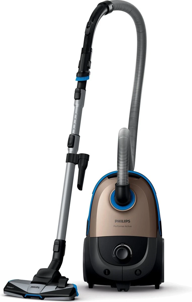 Performance maximale pour un nettoyage en profondeur. Nettoyage hygiénique avec la technologie AirFlowMax Le nouvel aspirateur Philips Performer Active offre d’excellentes performances de nettoyage et une élimination hygiénique de la poussière. La technologie AirflowMax maintient une puissance d’aspiration élevée plus longtemps. La brosse TriActive+ élimine efficacement la poussière sur tous les sols. Des résultats optimaux – Technologie révolutionnaire AirflowMax pour une aspiration très puissante – La nouvelle brosse 3 en 1 TriActive+ aspire les poussières fines et grosses Confort d’utilisation maximal – Brosse intégrée pour un confort optimal – Verrouillage ActiveLock pour une adaptation facile à chaque surface de nettoyage – Pare-chocs souple pour une glisse optimale le long des murs et des meubles – Capacité poussière de 4 l pour une utilisation prolongée Nettoyage hygiénique – Le filtre anti-allergènes piège plus de 99,9 % des poussières fines – Le sac S-bag classique longue performance dure jusqu’à 50 % plus longtemps – Testé pour la qualité anti-allergène selon la norme ECARF