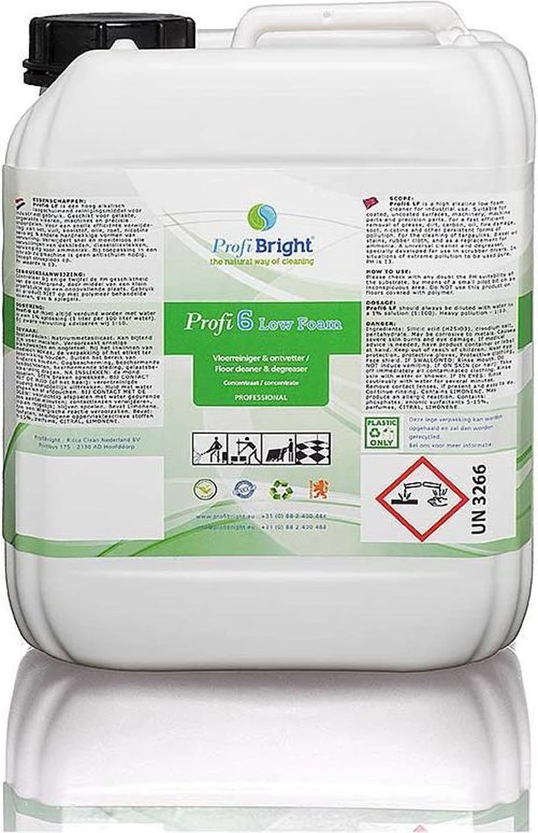 Le nettoyant et dégraissant pour sols Profi6 LF faible mousse est un nettoyant pour sols qui non seulement élimine toutes les saletés et dépôts, mais dégrais également immédiatement le sol. Convient également parfaitement pour une utilisation dans une autolaveuse ou un pulvérisateur haute pression. Dans le Profi6 LF faible mousse contient déjà un agent anti-oblique