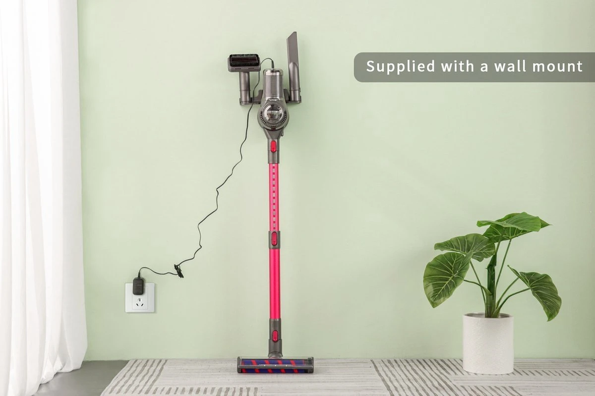 Grâce à sonsupport mural pratique l’aspirateur balai, y compris les accessoires, se range facilement et charge l’aspirateur après utilisation. Grâce à son design épuré, c’est un véritable accroche-regard dans votre intérieur. Lesbatterie puissante fonctionne sur batterie 2500Mah 6 cellules.