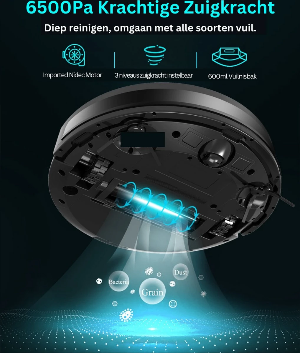 Capteurs avancés pour une navigation efficace – Cet aspirateur robot utilise des capteurs avancés pour détecter et contourner les obstacles, garantissant que votre maison est soigneusement nettoyée sans rester coincée.