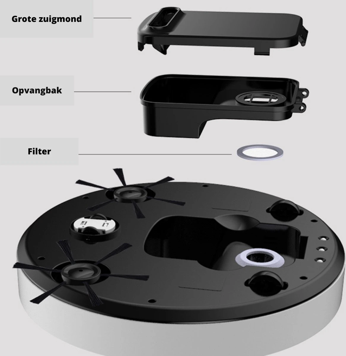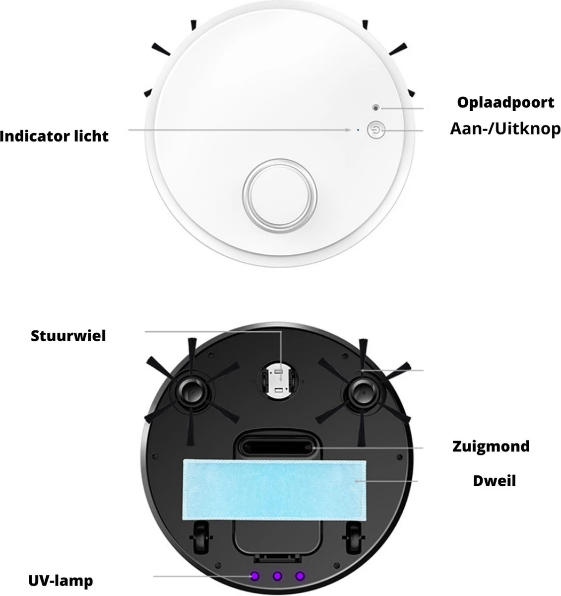 L’aspirateur robot est équipé d’une lumière UV, de sorte que l’appareil aspire non seulement la poussière et la saleté, mais élimine également les germes et les bactéries. Cela garantit un milieu de vie plus sain!