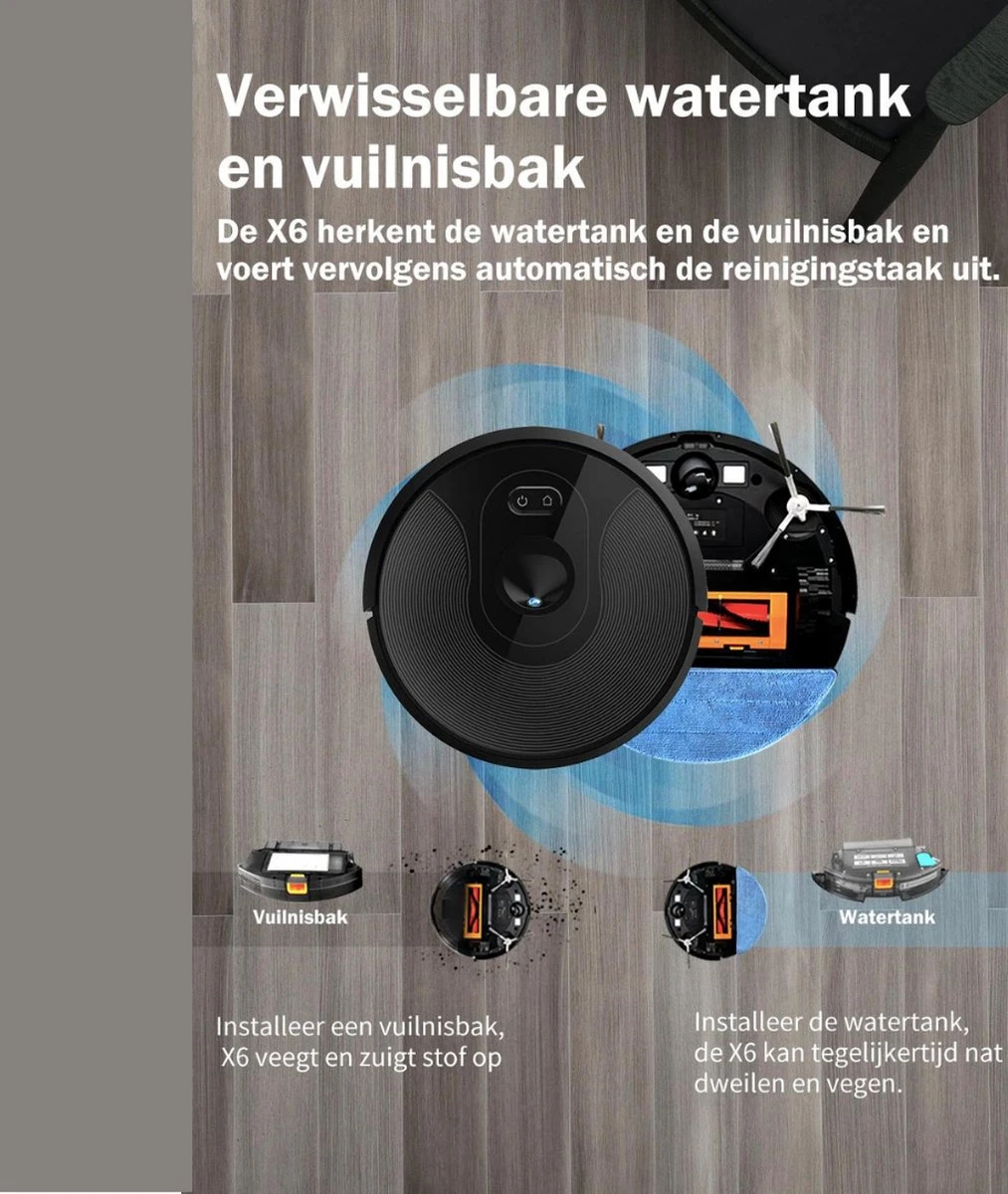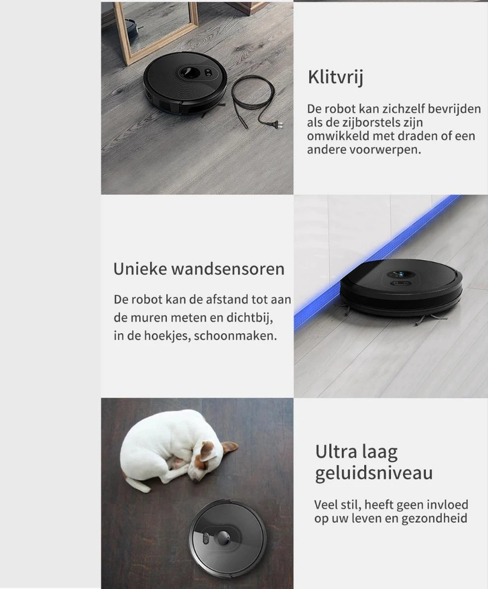 Le robot laveur est un robot aspirateur et un robot laveur en 1, car le robot peut d’abord tout nettoyer puis tout nettoyer. Pendant le nettoyage, le robot essuie immédiatement le sol, ce qui garantit un sol ou un tapis extrêmement propre. Cela garantit également que vous ne tomberez pas car cela serait glissant.