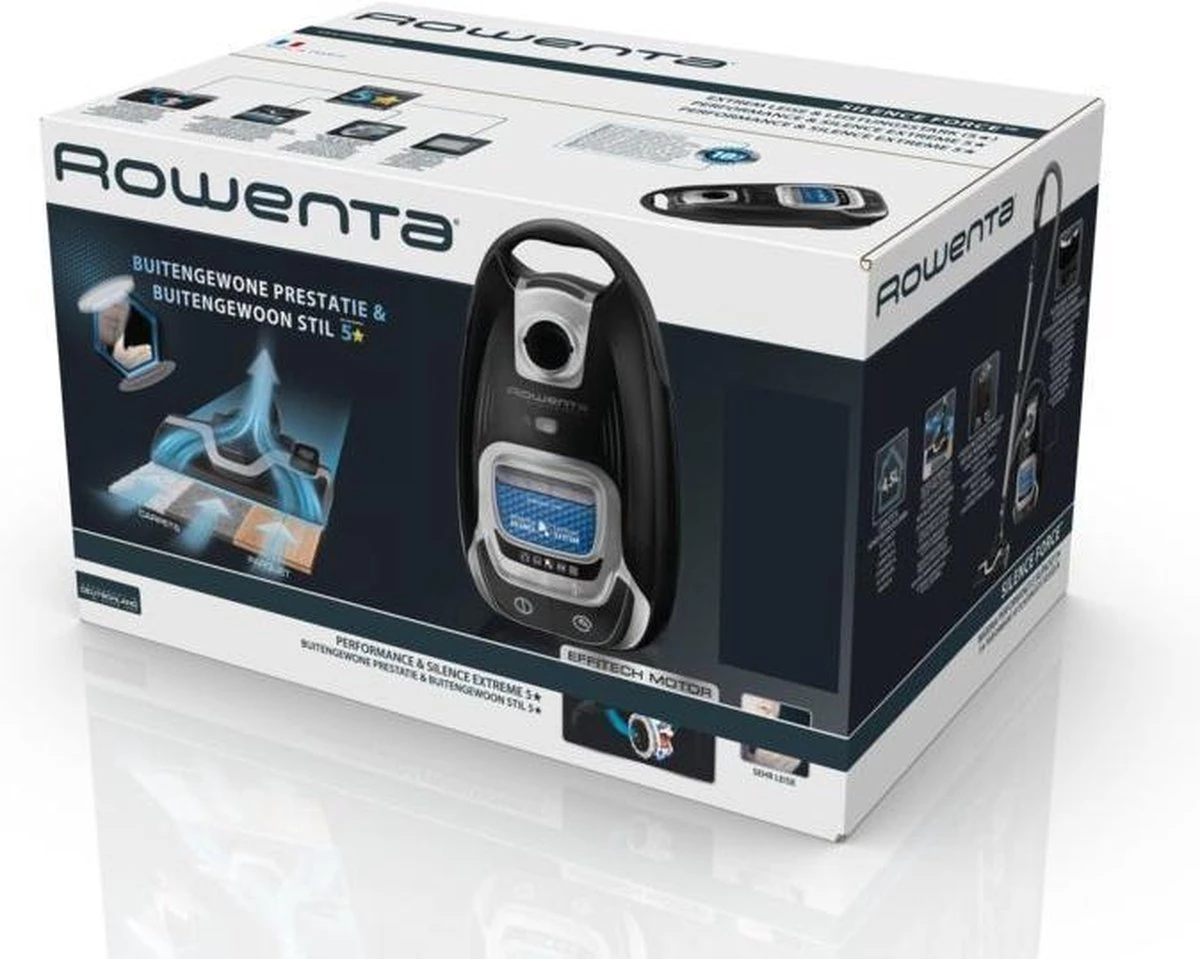 Le Rowenta RO7450 est équipé d’un nouveau sac Hygiène+ avec rabat à fermeture automatique. Cela empêche la libération de nuages de poussière lorsque vous changez le sac à poussière. De plus, cet aspirateur traditionnel est doté de filtres permanents dotés d’une technologie de filtrage puissante. Par conséquent, ces filtres n’ont jamais besoin d’être remplacés lorsque vous utilisez les sacs Hygiene+ de Rowenta.