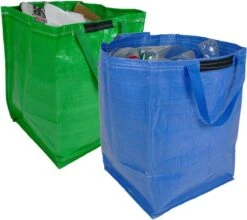 Sacs De Recyclage Sackmaker 47 Litres – 3 Boîtes De Rangement Souples Pour La Séparation Du Papier, Du Verre, Du Plastique – Chiffon Laminé Lavable – Tissu PP Tissé Durable (2 Sacs, Multicolore)