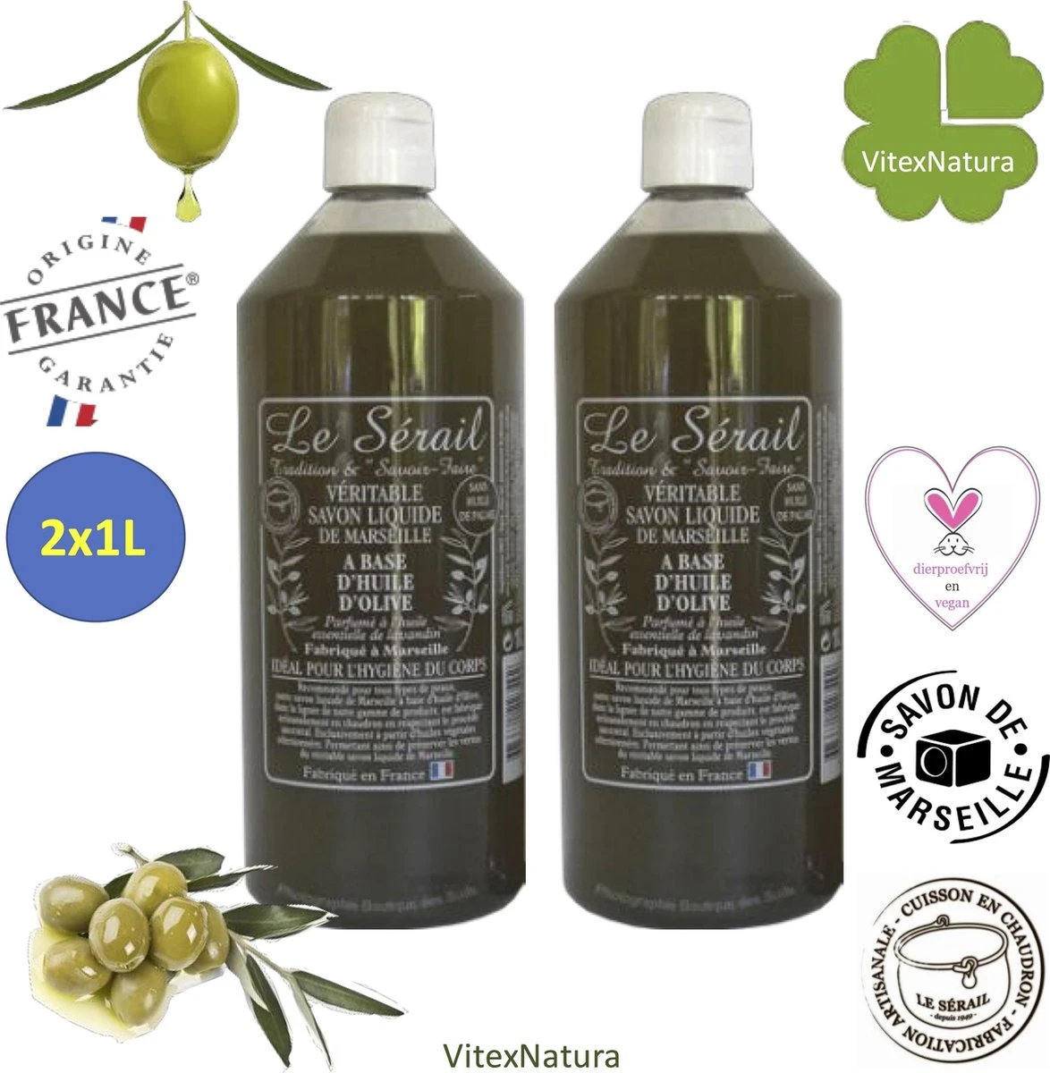 Savon liquide 2×1 Litre de la marque française Le Serail.