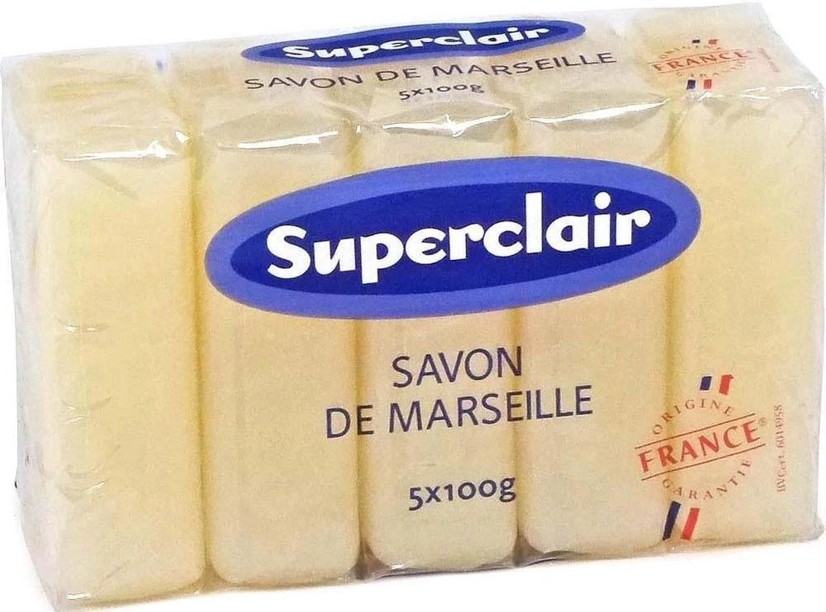 Les produits Superclair. La marque de savon destinée au marché de la lessive et des produits ménagers : savons de Marseille traditionnels, savon noir et bien d’autres.