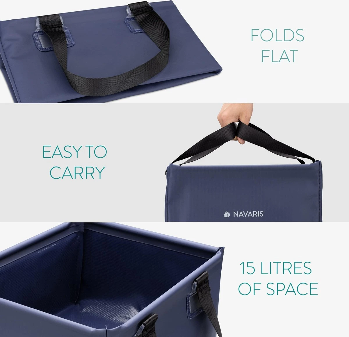 Ce seau carré unique de Navaris est pliable, ce qui le rend facile à ranger et à emporter avec vous.