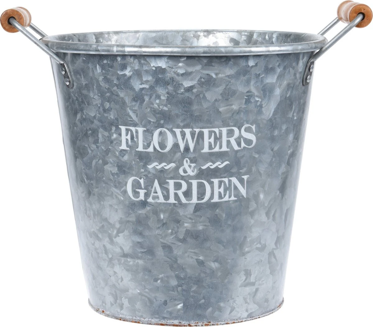 Seau/pot à Fleurs En Métal Argenté Avec Anse En Bois 14 Litres D24 X H25 Cm – Décoration De Jardin – Seau à Fleurs/bac à Fleurs/jardinière