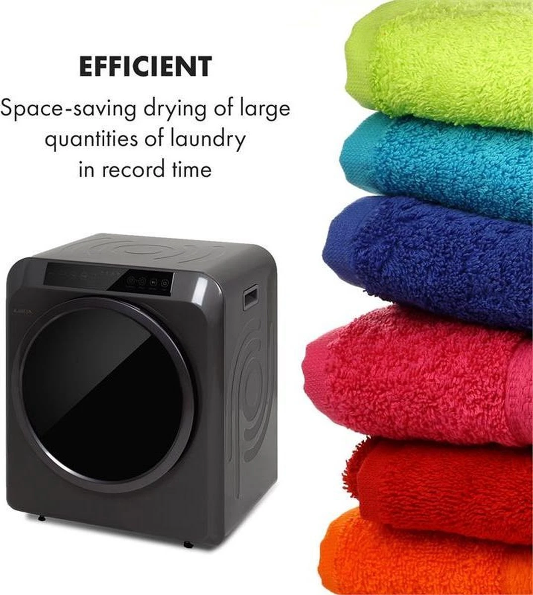 Droog en un temps record: le Klarstein EZ Drysèche-linge avec une puissance de 1500 watts, ne tourne pas la main pour les vêtements, serviettes ou housses de couette récemment lavés et encore humides et leur donne un temps sec, chaud et doux. Une fois que vous avez apprécié les vêtements ou la literie qui viennent de sortir de la sécheuse, vous ne voudrez plus manquer cette sensation merveilleusement douce. Et parce qu’il est très simple et confortable, leKlarstein EZ secsèche-linge 6 programmes de séchage, de très sec pour les jeans et le coton épais à un programme de 30 minutes pour les draps fins ou les sous-vêtements. Jusqu’à 6 kg de linge peuvent être rangés dans le chargeur frontal en acier inoxydable pratique, puis sélectionnez le programme approprié ou l’un des trois réglages de chaleur et il commencera tout de suite! Une fonction pratique de protection contre les plis assure un séchage sans plis.