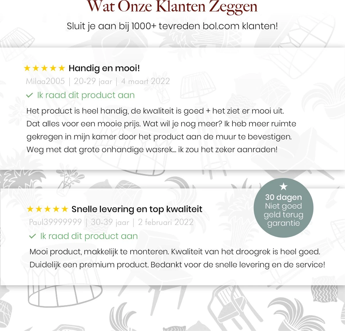 Le séchoir mural pliable Homestic© est garanti par notre garantie de satisfaction à 100 %. Si le produit ne vous convient pas, vous pouvez le retourner gratuitement dans les 30 jours et récupérer votre argent.