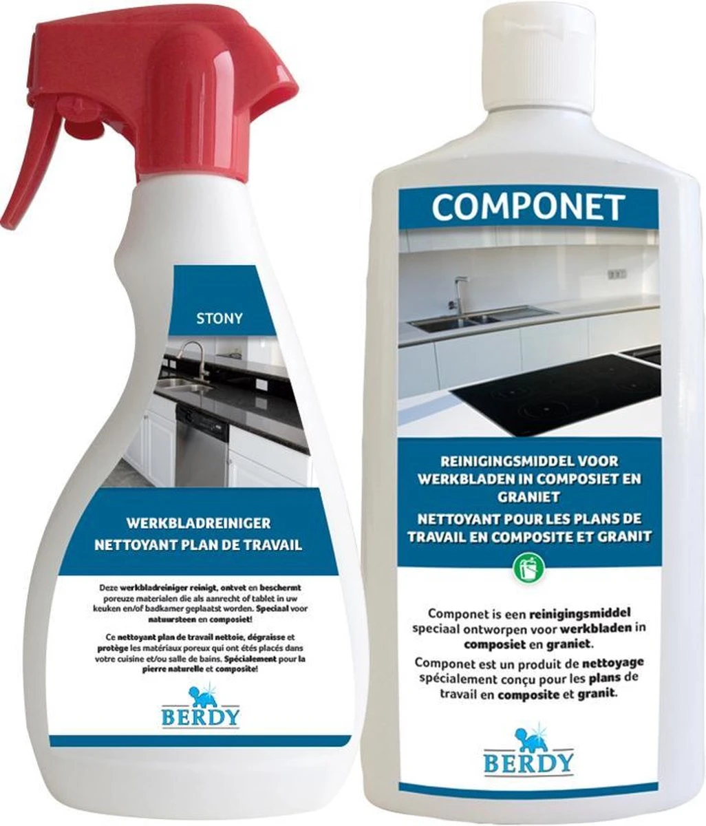 Le nettoyant pour plan de travail STONY nettoie, dégraisse et protège les matériaux poreux et non poreux qui sont placés comme comptoir ou tablette dans la cuisine et / ou la salle de bain. Convient pour la pierre naturelle, le composite et la céramique. Le produit est prêt à l’emploi.