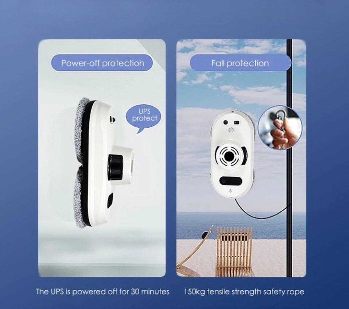 Parce que ce robot nettoyeur de vitres est équipé d’un système d’adsorption sous vide, vous pouvez laisser ce robot nettoyeur de vitres faire tout le travail, de sorte que vous n’aurez plus jamais à chanceler dans ces escaliers dangereux.