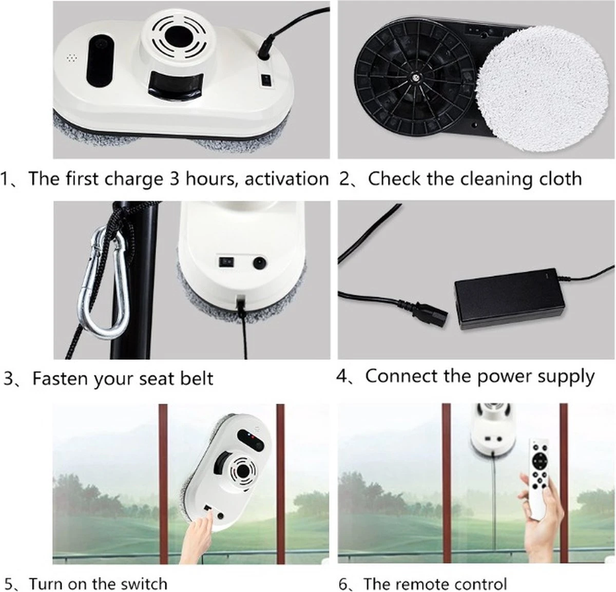 Ce robot nettoyeur de vitres Sontrix est également très facile à utiliser, vous pouvez donc nettoyer vos vitres en 6 étapes simples :