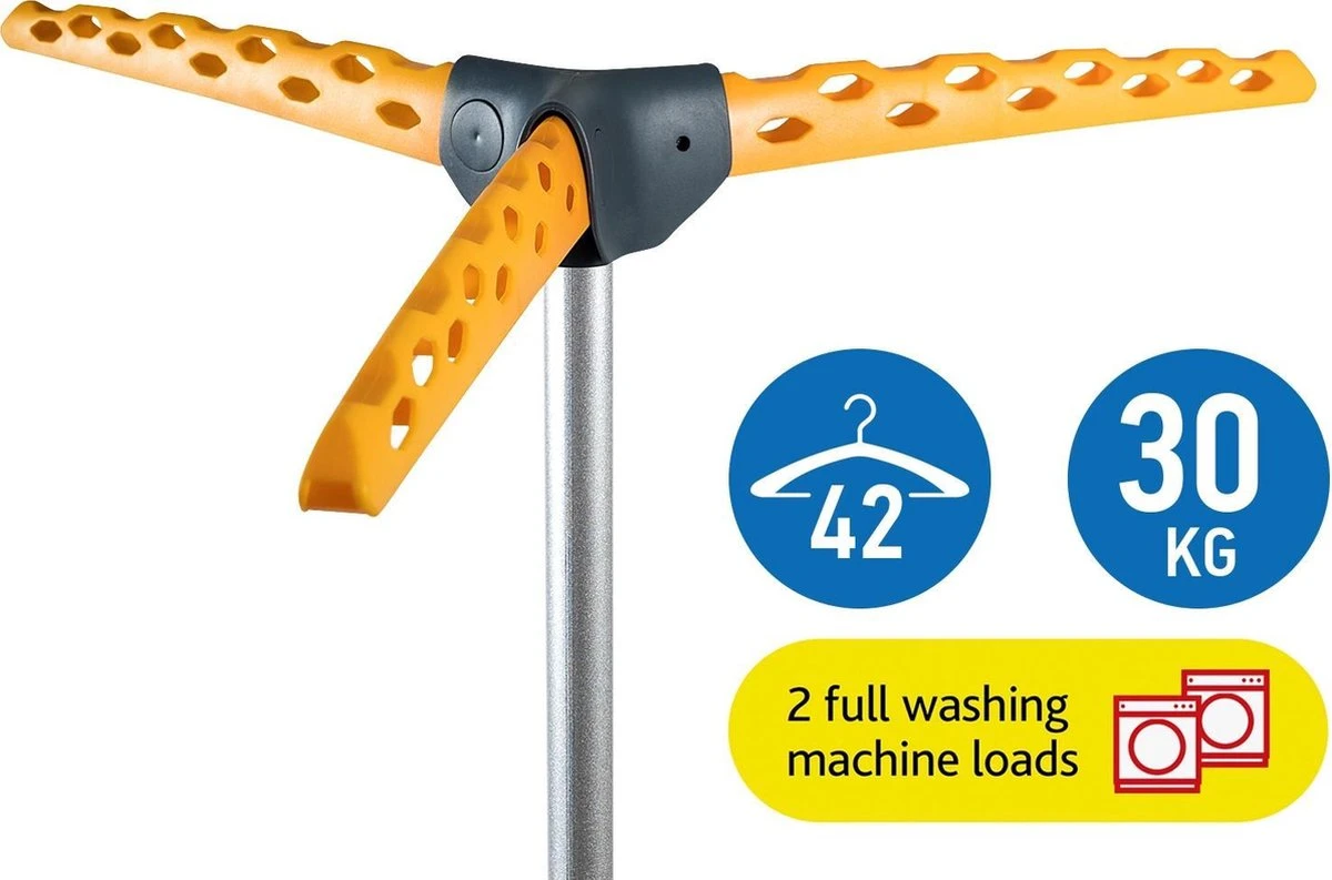 Ce séchoir à linge pliable robuste offre un espace pour 30 kg ou 2 machines à laver complètes de linge. Le linge est-il sec? Il suffit ensuite de plier le rack en un paquet compact. Pratique si vous n’avez pas beaucoup de place dans la maison pour sécher. Le support de séchage est en plastique ABS et en acier peint par poudrage. Le support mesure 150 cm de long et pèse 2,8 kg, ce qui est léger et offre en même temps une résistance suffisante. Par conséquent, lorsque vous accrochez vos vêtements, vous n’avez absolument pas à vous inquiéter de savoir si le porte-bagages va tomber. La grille de séchage est conçue pour transporter une grande capacité de linge, jusqu’à 42 cintres. Le séchoir à linge d’Artmoon n’est pas seulement utile pour sécher le linge. Par exemple, si vous avez temporairement besoin de plus d’espace dans les placards, vous pouvez toujours utiliser le rayonnage pour un stockage supplémentaire. Caractéristiques : ✔ Grande capacité ✔ Facile à ranger ✔ Construction durable et robuste ✔ MultifonctionnelCaractéristiques : Merk: ArtMoon Taille: 66cm x 150cm Capacité: 30kg (2 rondelles pleines au lavage) Espace pour 42 cintres