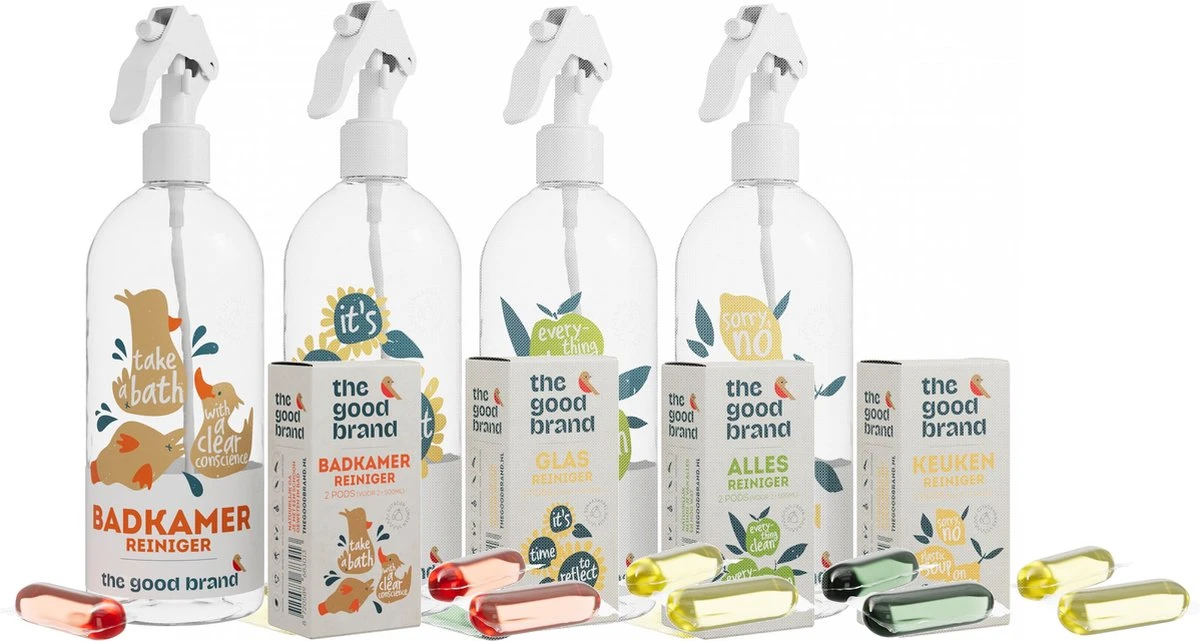 Nettoyez tout durablement avec The Good Brand. Notre bouteille en plastique recyclé est rechargeable. La dosette de nettoyage incluse convient pour un nettoyant tout usage de 500 ML. Lorsqu’il est épuisé, il suffit de mettre une nouvelle dosette dans la bouteille et de la remplir d’eau. Heel simple et bon pour notre planète.