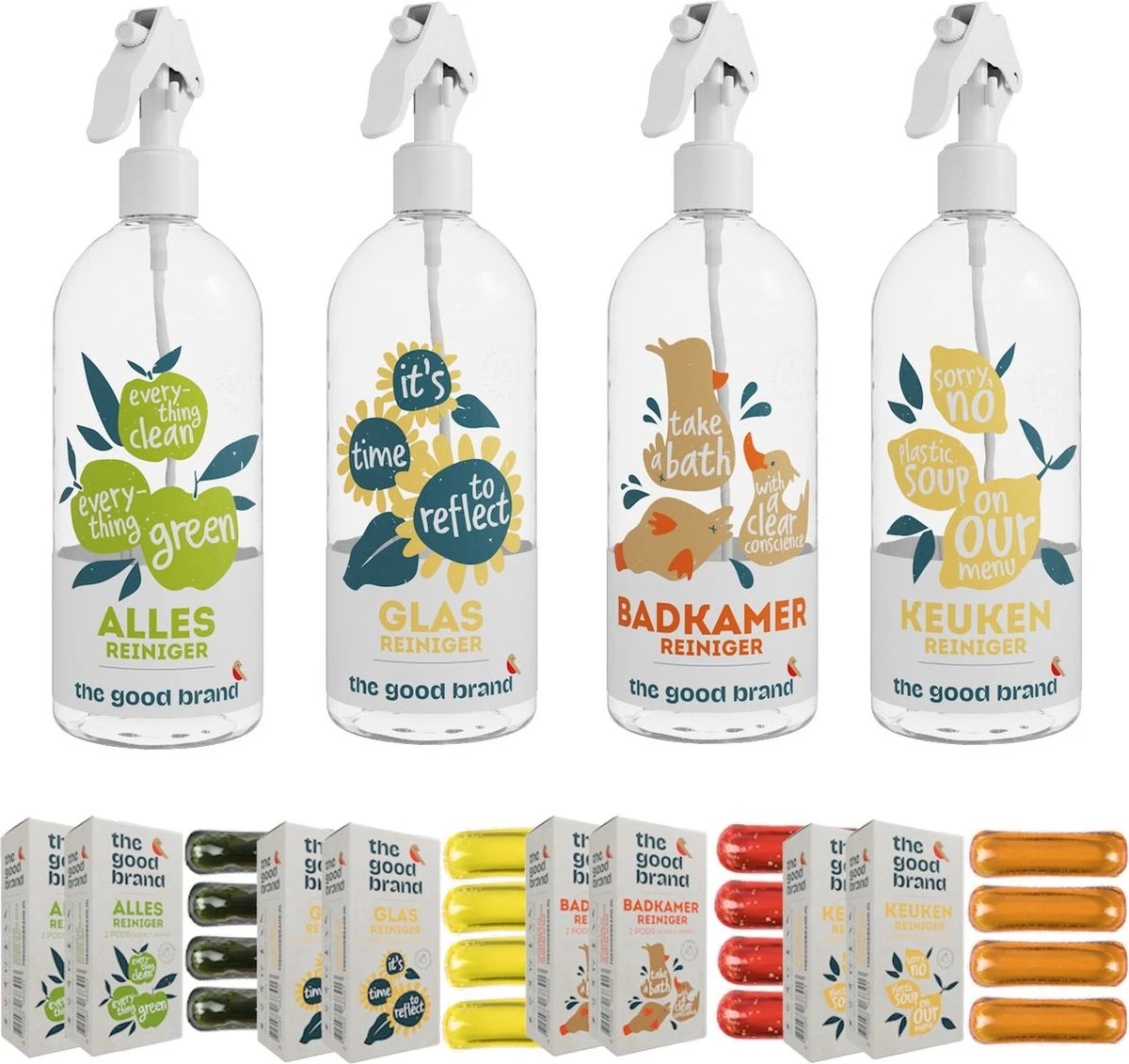 Nettoyez tout durablement avec The Good Brand. Notre bouteille en plastique recyclé est rechargeable. La dosette de nettoyage incluse convient pour un nettoyant tout usage de 500 ML. Lorsqu’il est épuisé, il suffit de mettre une nouvelle dosette dans la bouteille et de la remplir d’eau. Heel simple et bon pour notre planète.