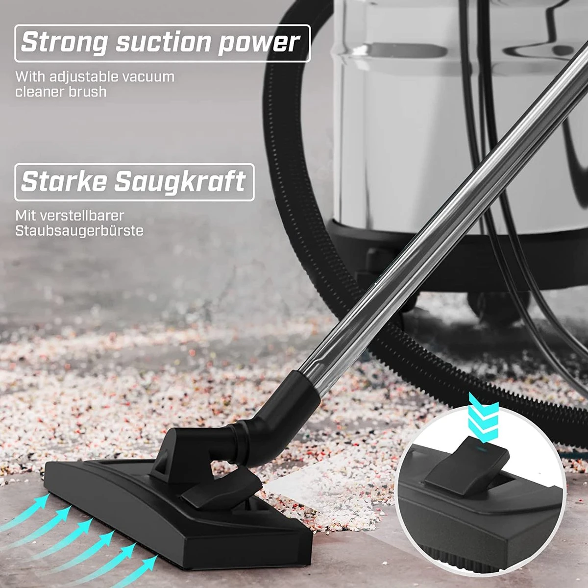 | Contenu de l'emballage | 1x Timbertech – Aspirateur industriel, 2300 W – 30L avec fonction soufflerie – 3 filtres – Conteneurs en acier inoxydable – aspirateur eau/poussière – aspirateur multifonction – bleu |