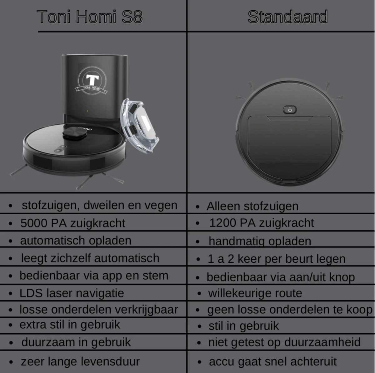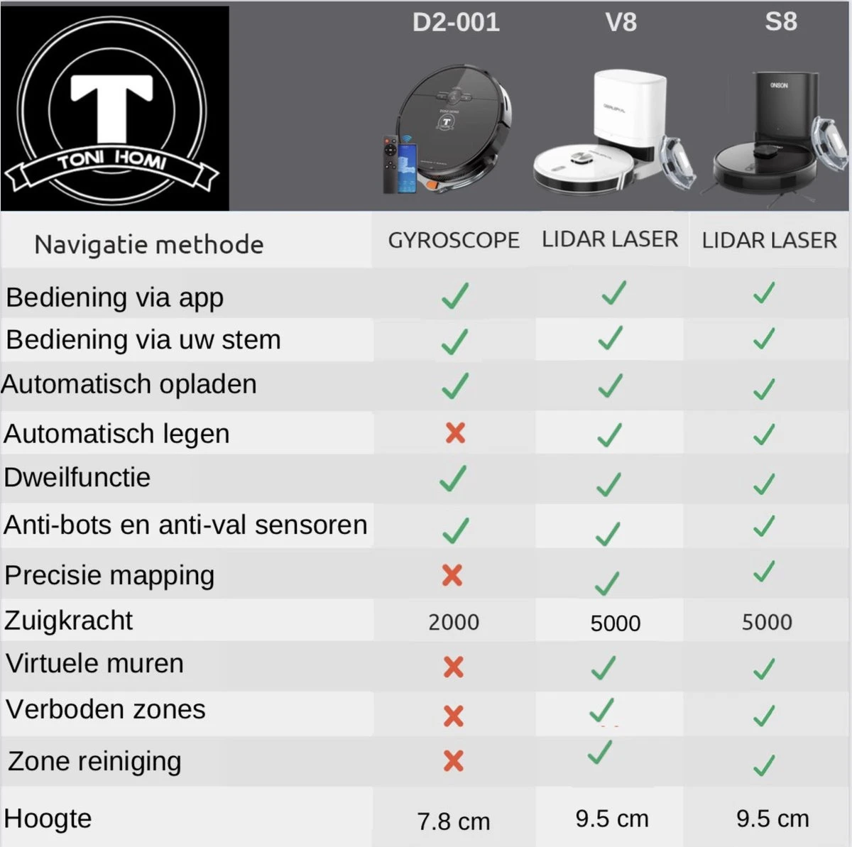 Soyez le premier à laisser votre avis sur “TONIHOMI® S8 – Aspirateur Robot Avec Fonction De Nettoyage – Vidange Automatique – Recharge Automatique – Navigation Laser LDS – Zwart” Annuler la réponse