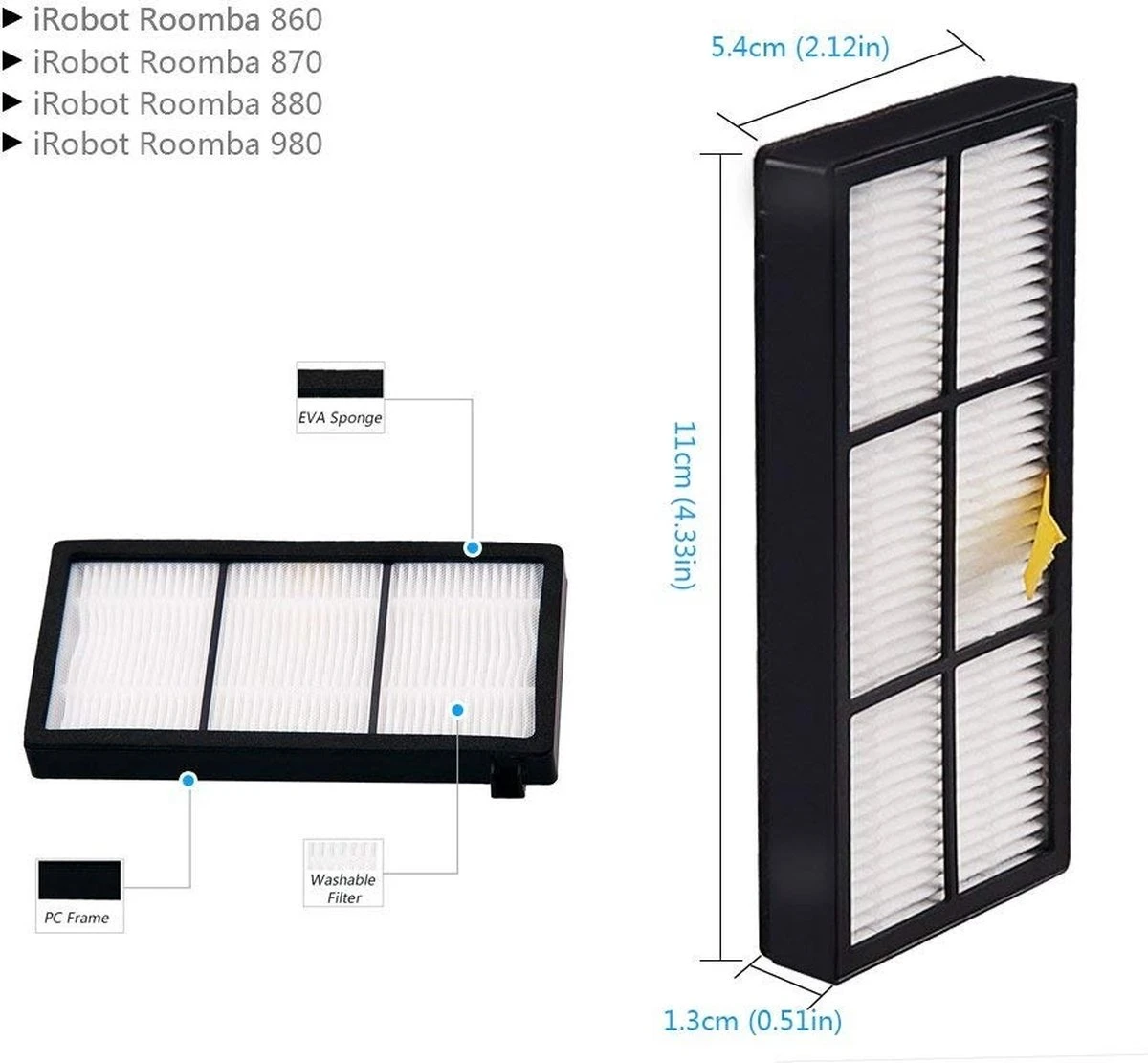 Vous avez un aspirateur Irobot Roomba 800 ou 900 ? Alors ne cherchez plus! Votre filtre HEPA pour cet aspirateur doit être remplacé de temps en temps. Cet ensemble de filtres HEPA se compose de 13 pièces, convient aux Irobot Roomba 800, 900 et est facile à installer. Après avoir placé ce nouveau filtre HEPA, votre aspirateur éliminera à nouveau de manière optimale la saleté et la poussière. De plus, cet ensemble de filtres HEPA est fabriqué à partir de matériaux de haute qualité.