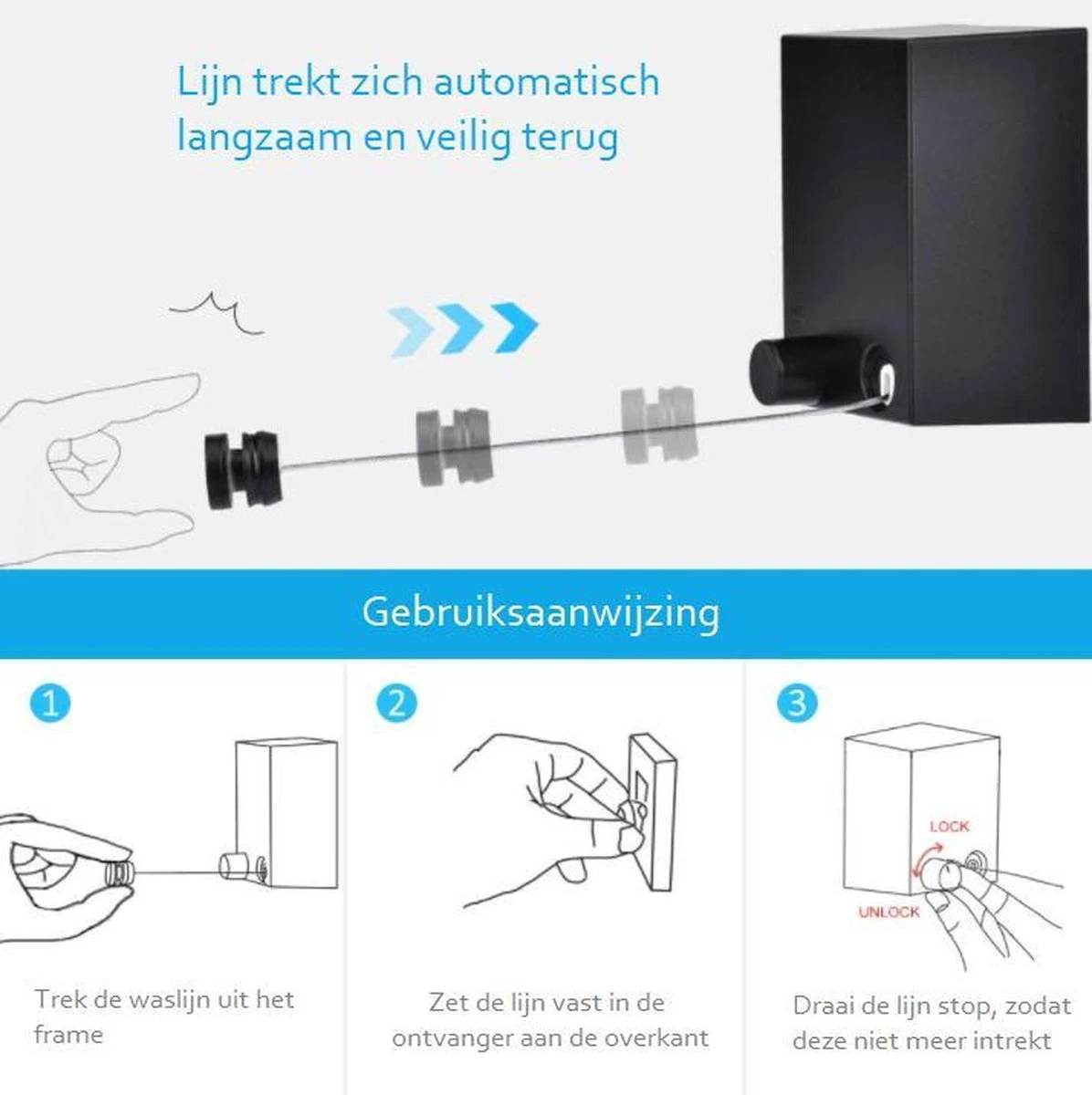 Facile à utiliser: attachez facilement la corde à linge n’importe où, puis tirez la corde à la longueur désirée et raccrochez. De cette manière, les énormes étagères de séchage, les tours de séchage et les séchoirs qui occupent un espace extrêmement important peuvent enfin quitter la maison.