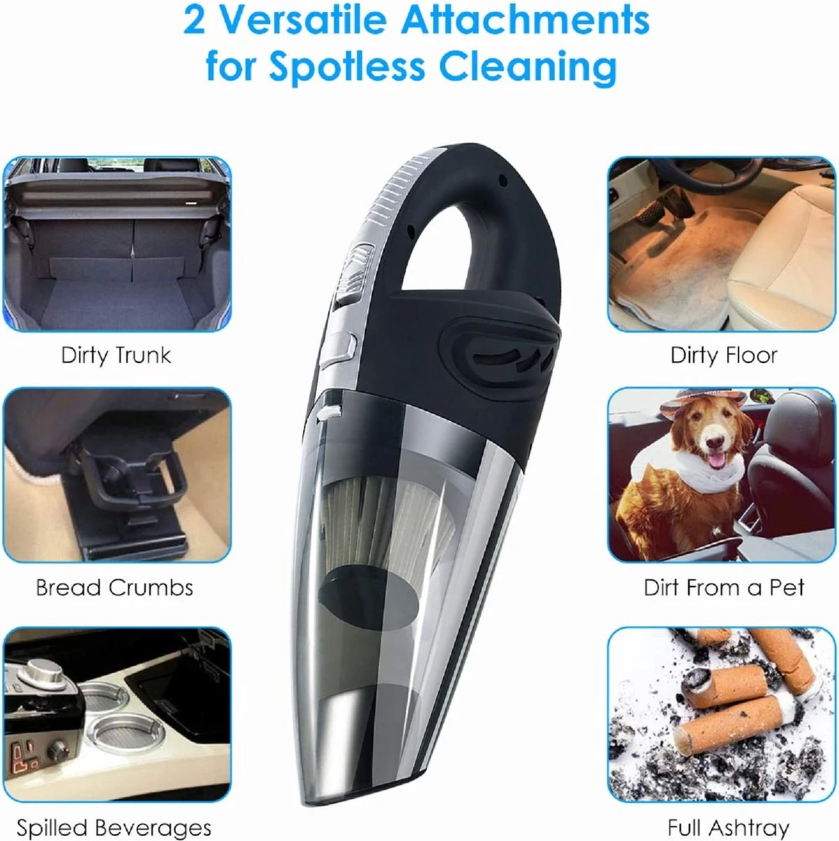 - Nettoyage complet, pas de points morts : avec l’aspirateur à batterie portable, vous pouvez éliminer complètement la poussière des canapés, murs, escaliers et autres zones difficiles d’accès. Offre une gamme complète de nettoyage pour votre environnement domestique. Geen de peur des liquides et des points morts