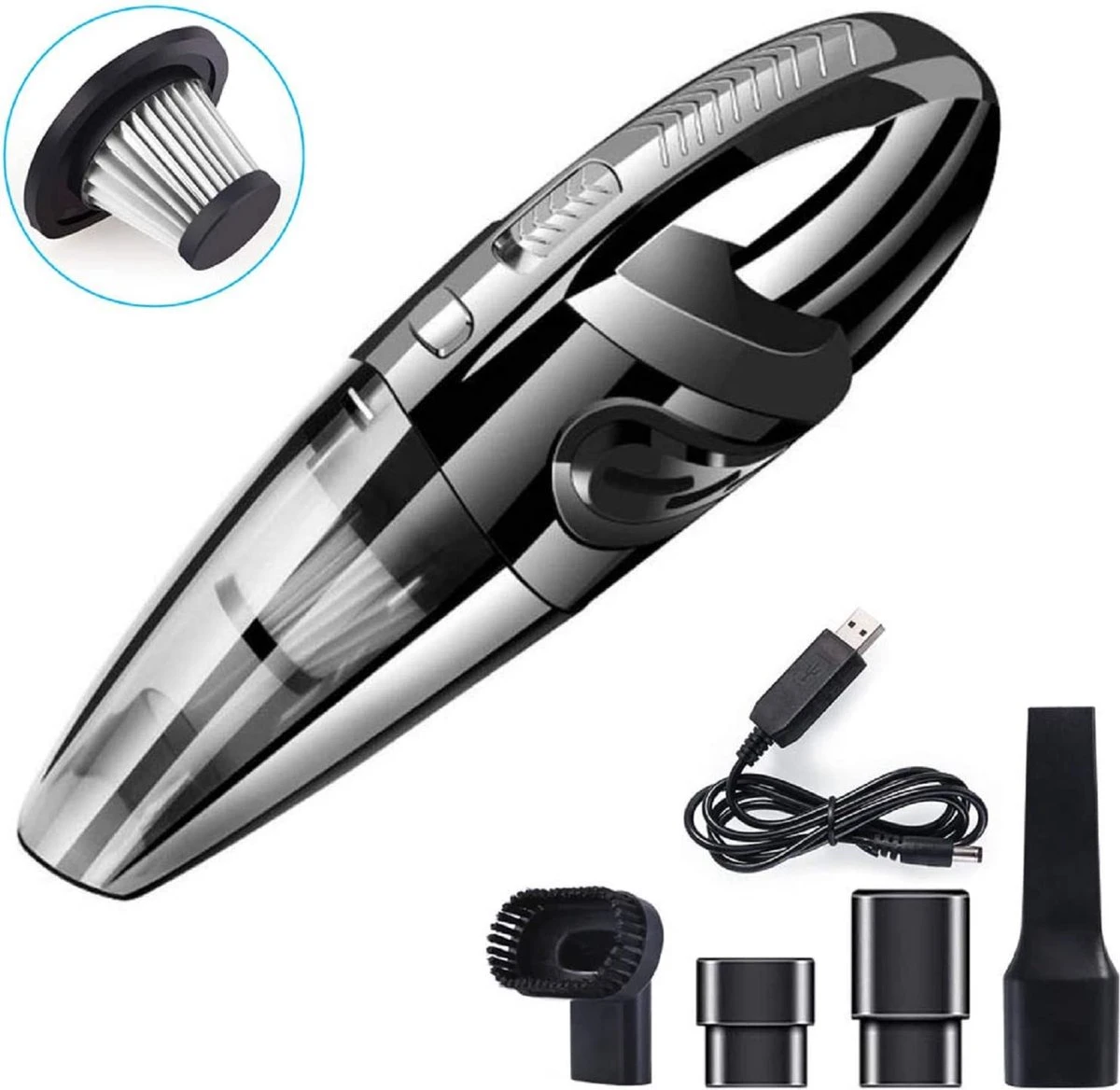 - Longue durée de vie : batteries lithium-ion intégrées d’une capacité de 2200 mAh et d’une autonomie allant jusqu’à 20 minutes. Dans le même temps, l’aspirateur portable est livré avec une tasse de collecte de poussière amovible de grande capacité pour répondre aux exigences de nettoyage en profondeur du salon à la chambre.