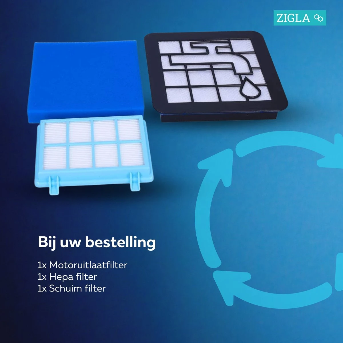 Contenu : 1x filtre hepa, 1x filtre d’entrée moteur, 1x filtre d’échappement en mousse et 1x filtre d’échappement.